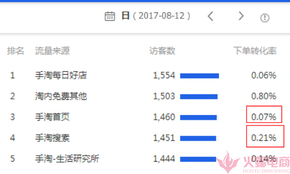 8月12号:手淘首页转化率0.07%,手淘搜索转化率0.21%