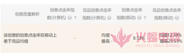 可以说一目了然吧。其中竞品创意点击率指数给出了均值和最高两个数据。