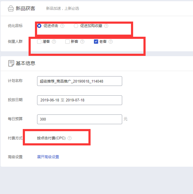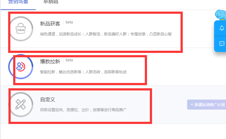 一般在设置营销场景的时候,一般性的宝贝建议选择日常销货场景进行营销,如果店铺的产品点击率好,转化率好,流量获取比较容易的这样的产品可以选择拓展新客,根据自己的需求要选择场景。