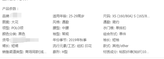 首先我们这边我们可以清晰明了的知道我们的产品都是些什么风格属性:POLO领、短袖、短裙、中腰、H型、单排扣、简约...